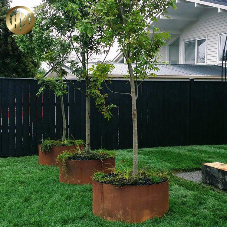 or cold. Corten steel is perfect for modern landscapes. The color and texture fits very well with acid washed concrete,